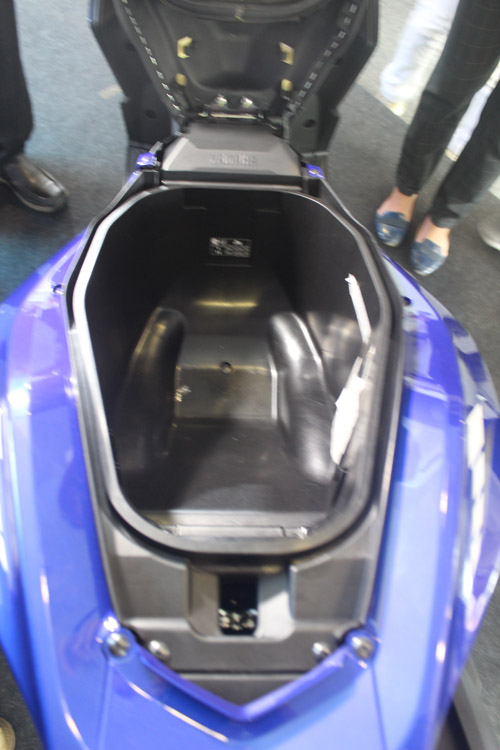 Dựa trên bộ vành bánh 14-inch, NVX nhìn thoáng qua đã rất ấn tượng, với đèn xi nhan và các đường cong trên thân xe uốn lượn bắt mắt. Hộc đựng đồ dưới yên xe với dung tích lên tới 25 lít, bên phải bảng điều khiển xe còn có hộc đựng găng tay nhỏ chứa nhiều vật dụng tiện ích.